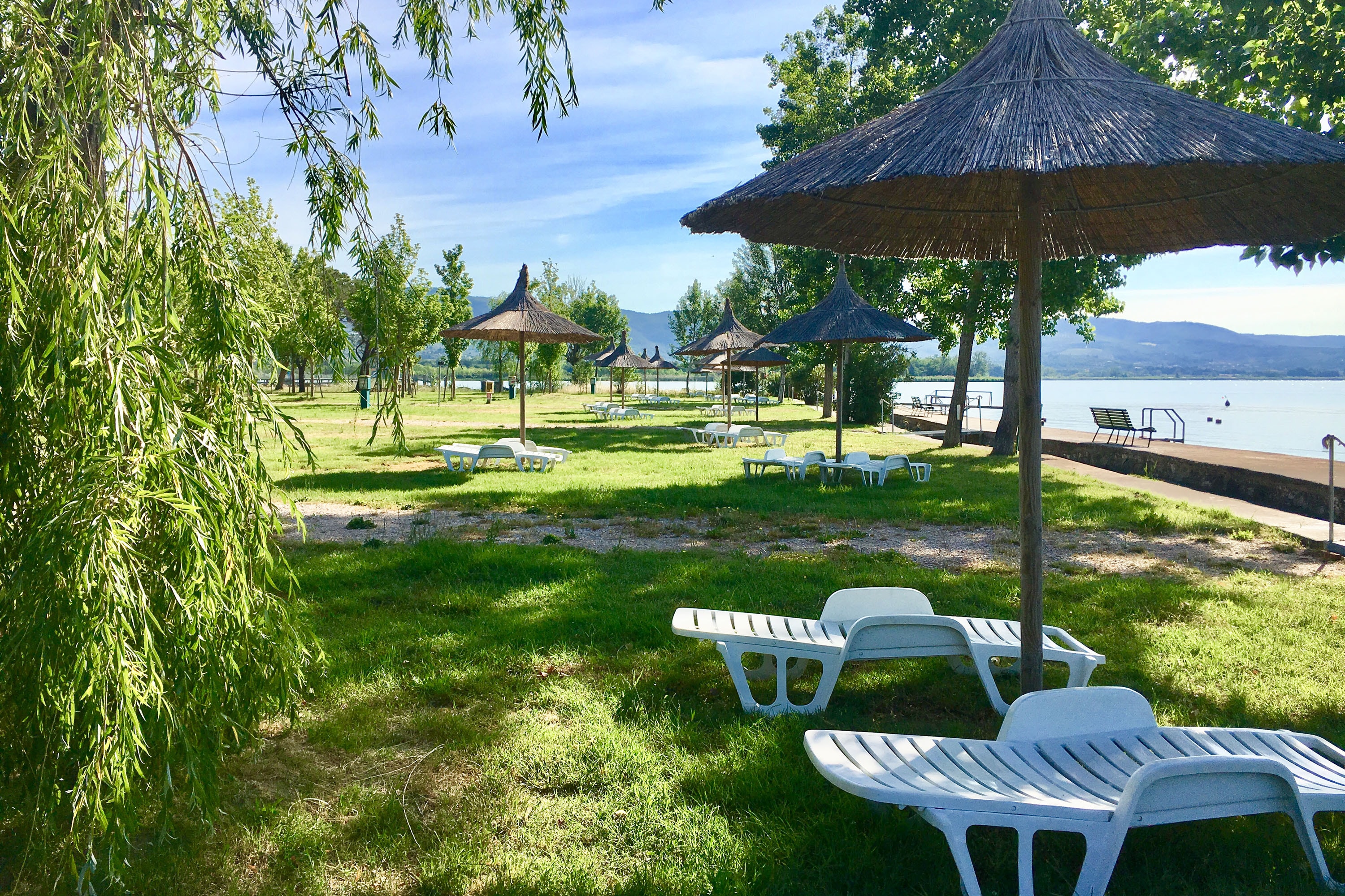 Kampeer in Tuoro sul Trasimeno, Italië via de Flickmyhouse Marketplace. Grote, gastvrije camping aan het meer met waterobjecten en een zwempier. Ook geschikt voor gezinnen met oudere jeugd en de hond is gratis. Veel plaatsen bieden schaduw en zijn redelijk ruim. In hoogseizoen elke dag professionele animatie voor jong en oud. Strand, bar en volwassenen-disco om de hoek. Gratis extra’s zoals Dragonboat trips, kano’s, zwembad, elektra, douches, kids avonturenpark. Geen betaling toeristenbelasting.. Deze camping wordt beoordeeld met een 7 van de 10.