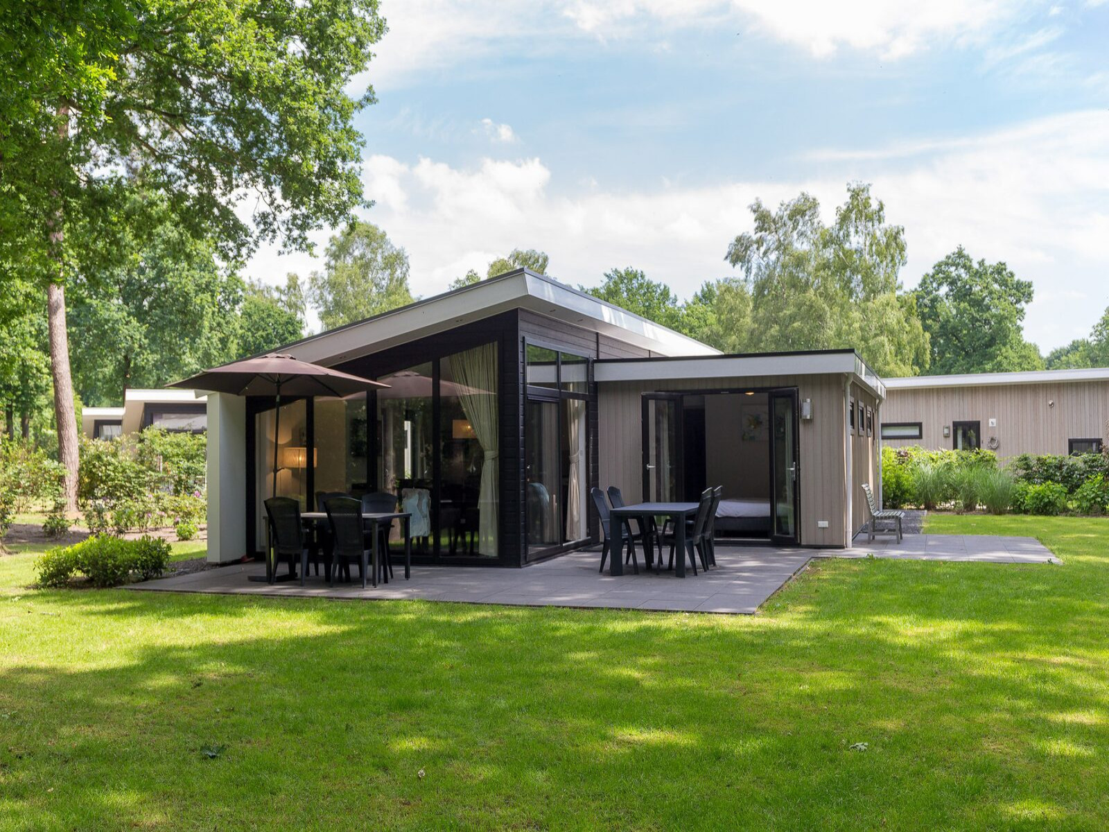 Dit ruime acht persoons familiehuis is gelegen aan de bosrand en heeft een oppervlakte van 100m2. De woning heeft een eigen toegang tot het bos en de zandverstuiving.In de gezellig living bevinden zich onder andere een bank, twee fauteuils en een eetkamertafel met acht comfortabele stoelen. De keuken is onder andere voorzien van een koffieapparaat, koelvriescombinatie, combimagnetron en vijfpits gaskookplaat. Er zijn vier slaapkamers: twee slaapkamers met twee boxspringbedden tegen elkaar aan, één kamer met twee boxspringbedden uit elkaar en één kamer met stapelbed. In de badkamer bevindt zich een toilet, inloopdouche en wastafel. De tweede badkamer ensuite heeft een wastafel en douche. Tevens is er een tweede toilet op de begane grond aanwezig. De grote bostuin is voorzien van een ruim gemeubileerd terras. De woning beschikt over twee parkeerplaatsen.Meer informatie over de faciliteiten in deze accommodatie vind je onder het kopje “Extra informatie”.