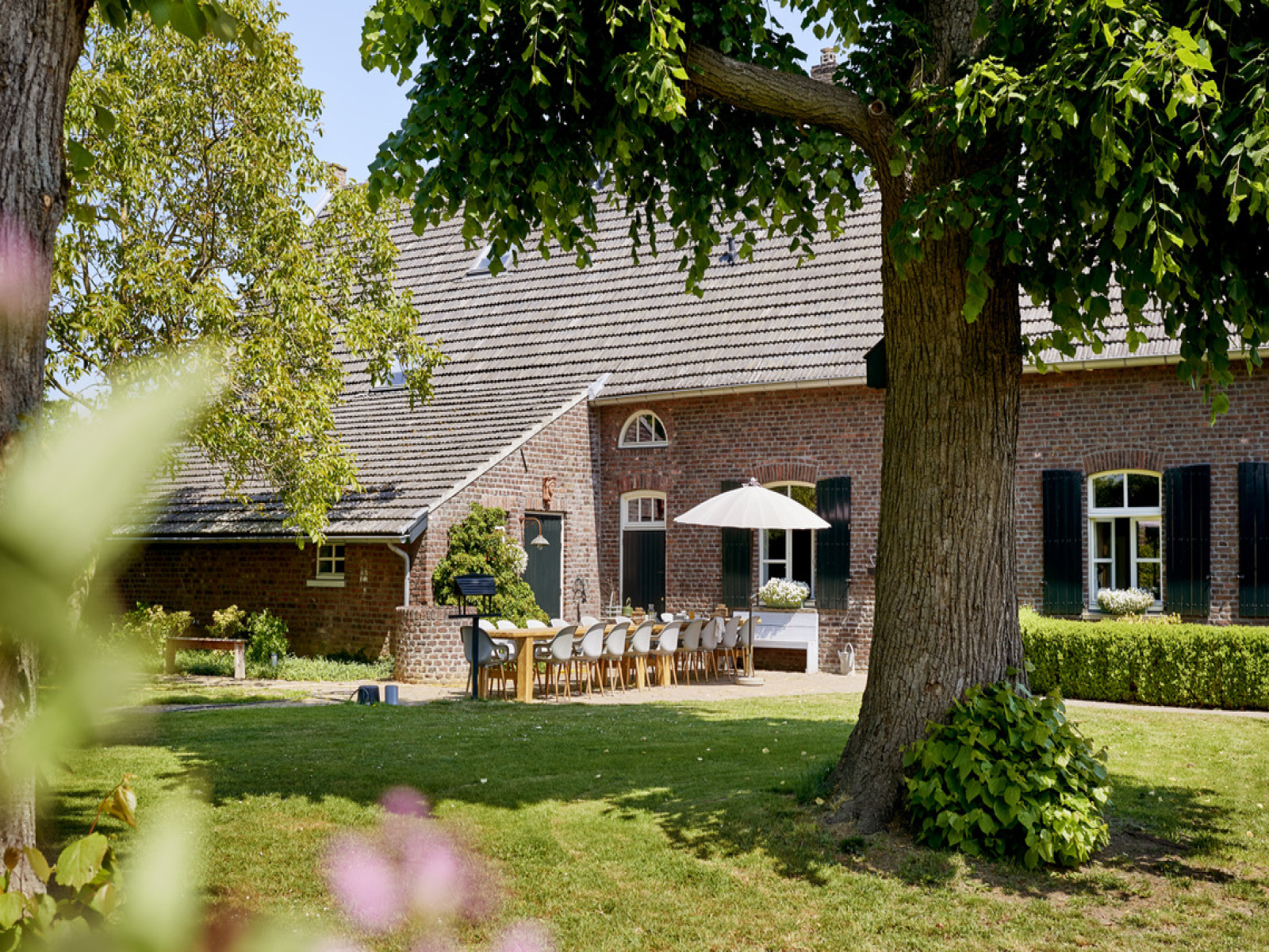 Deze unieke groepsaccommodatie is geschikt voor twintig personen. De accommodatie is geschakeld samen met één andere groepsaccommodatie. De accommodaties worden gescheiden van elkaar door een informatieruimte die midden in het gebouw ligt. U kunt de boodschappen- en barbecueservice inschakelen om helemaal verwend te worden. In de omgeving is genoeg te doen. Ga bijvoorbeeld een dagje naar Venlo of wandel door de mooie natuur. Kom ’s avonds tot rust in de hottub die voor u klaar staat en slaap in de boxspringbedden. Deze accommodatie is gelegen op een kleinschalig vakantiepark voorzien van speeltoestellen en picknicktafels voor algemeen gebruik. De accommodatie is gebouwd in de oude stallen van een historische carré boerderij en beschikt over een privé terras en een groot privé terras. De grote groepsaccommodatie heeft een gezellige woonkamer met flatscreen TV. De keuken is voorzien van goede apparatuur zoals een keukenmachine en twee vaatwasmachines. Op de eerste verdieping is een speelhoek ingericht met PlayStation 3. Er zijn negen slaapkamers te vinden met elk een eigen badkamer. De bedden zijn comfortabele boxsprings. U beschikt over een omheinde privé-tuin met tuinmeubilair en een trampoline. De hottub staat in de tuin, en is te huur. Er is een overdekte fietsenstalling met oplaadpunt voor de elektrische fietsen aanwezig.Meer informatie over de faciliteiten in deze accommodatie vind je onder het kopje “Extra informatie”.