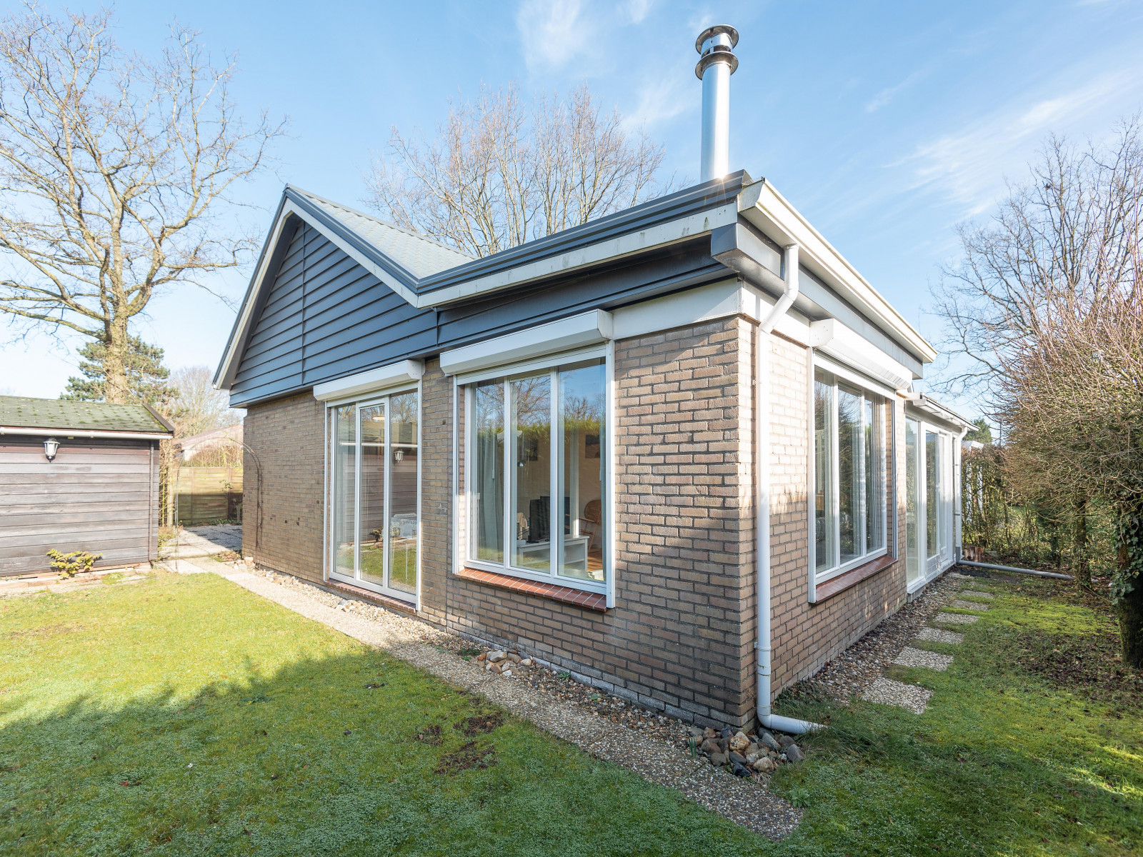 Modern ingerichte woonkamer met een zithoek voor zien van TV en houtkachel. De kleine, nieuwe keuken is voorzien van een vaatwasser, magnetron, oven, Nespresso, koelkast, vriezer en toaster. Er zijn twee slaapkamers, een slaapkamer met tweepersoonsbed en een slaapkamer met een stapelbed voor kinderen. De badkamer is voorzien van een douche, toilet en wastafel. De grote tuin is deels omheind, zodat kinderen en een huisdier naar hartelust kunnen spelen. Er is parkeerruimte voor één auto op eigen terrein.