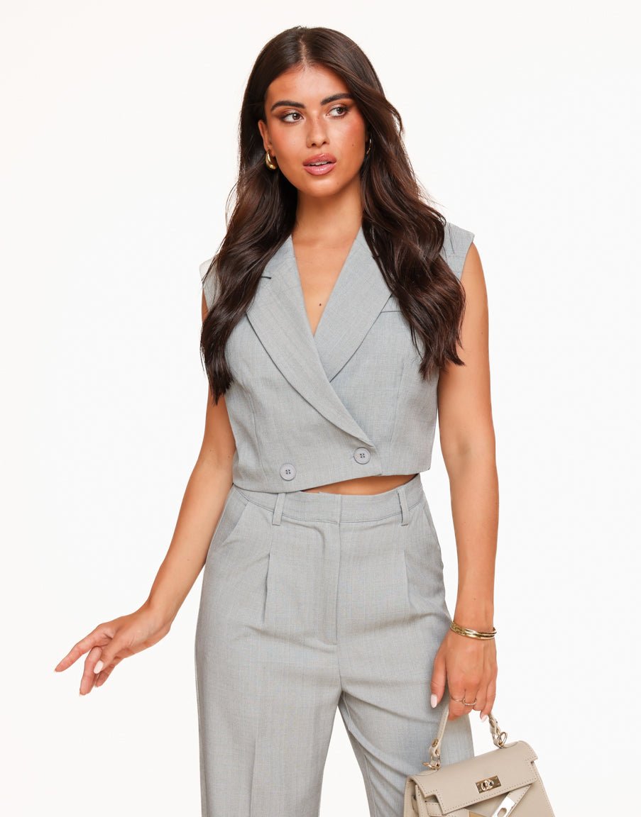 Lichtgrijze Mouwloze Blazer – Gilet | Olivia & Kate